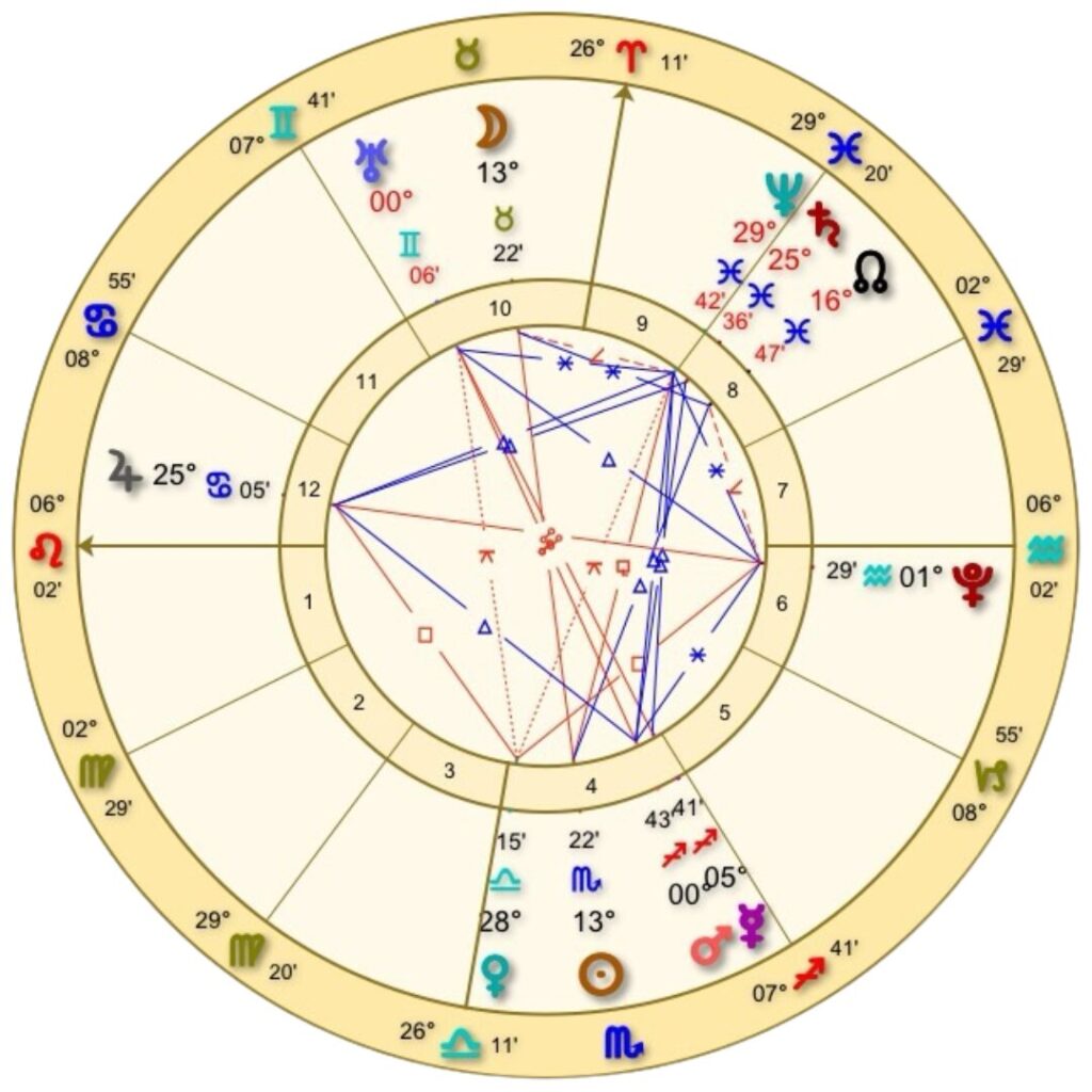 1. 金星(射手座7°)と冥王星(水瓶座1°)のセクスタイル